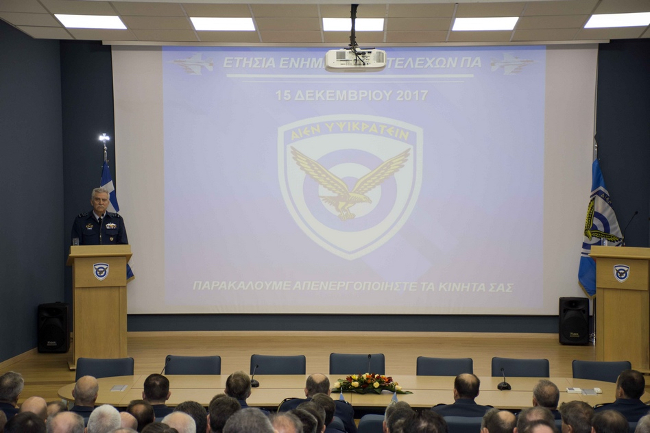 Αφοσίωση στο σχέδιο για να συνεχιστούν και το 2018 οι «υψηλές πτήσεις» της Πολεμικής μας Αεροπορίας στην αντιμετώπισης της απειλής, δηλαδή την Τουρκία, ζήτησε ο αρχηγός ΓΕΑ, Αντιπτέραρχος(Ι) Χρήστος Χριστοδούλου, στην Ετήσια Ενημέρωση Στελεχών της Πολεμικής Αεροπορίας (ΠΑ). Σκοπός της ενημέρωσης ήταν η παρουσίαση των μειζόνων θεμάτων της ΠΑ, ο απολογισμός έργου για το 2017 και ο καθορισμός στόχων για το 2018.