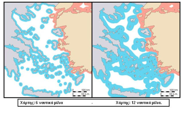 Η «επίσημη» εκδοχή είναι ότι με τα 6 νμ κατέχουμε το «43% του Αιγαίου», ενώ εάν τα επεκτείνουμε στα 12, θα κατέχουμε το «70%».