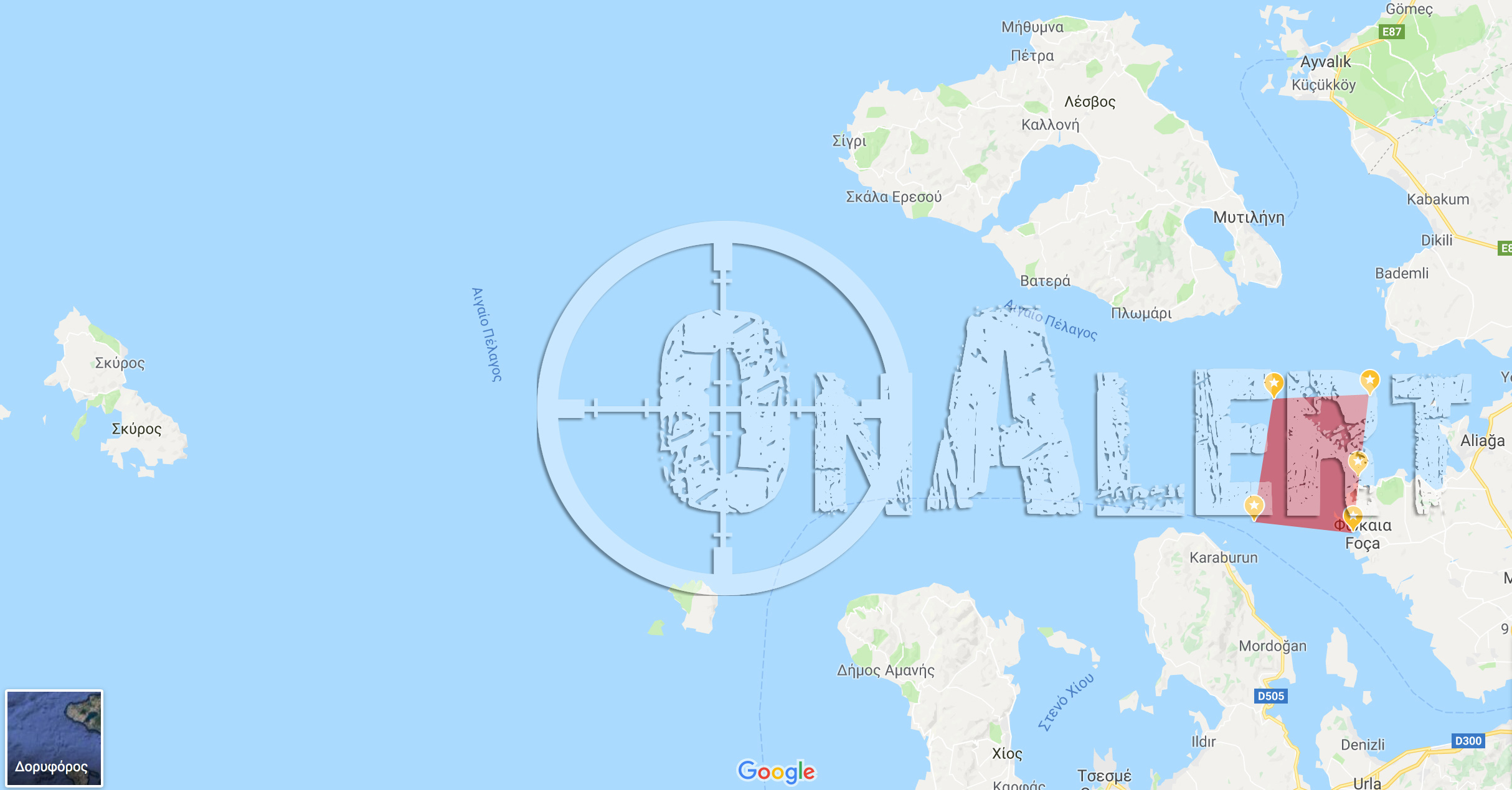 Για σήμερα αλλά και για αύριο οι Τούρκοι έχουν βάλει στο «στόχαστρο» και μια ευρεία περιοχή στα νοτιανατολικά της Λέσβου. Σύμφωνα με τη NAVTEX 1305/17 στο διάστημα από επτά το πρωί έως στις τέσσερις το απόγευμα θα διεξαχθεί η άσκηση με πυρά του τουρκικού πολεμικού ναυτικού.
