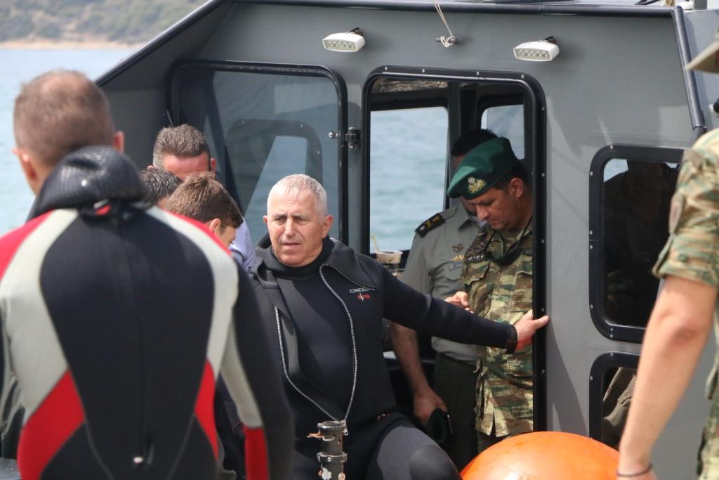 Ακολούθως, ο Αρχηγός ΓΕΕΘΑ συμμετείχε σε προγραμματισμένο άλμα αλεξιπτωτιστού από Ε/Π Chinook CH-47D και σε κατάδυση στην ευρύτερη θαλάσσια περιοχή, με προσωπικό της ΔΥΚ, της Ζ’ ΜΑΚ και του ΕΤΑ.