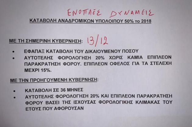 Μάλιστα, στην συνέχεια της ανάρτησης του, ο ΥΕΘΑ, επικρίνει τις προηγούμενες Κυβερνήσεις για τον τρόπο με τον οποίο διαχειρίστηκαν την υπόθεση των αναδρομικών, σημειώνοντας ότι αυτές επέστρεψαν το πρώτο 50% σε 36 δόσεις και με επιπρόσθετες φορολογικές επιβαρύνσεις.