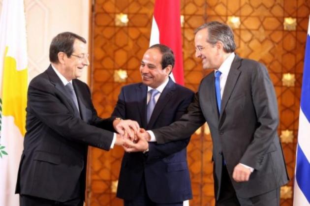Ο πρόεδρος της Αιγύπτου δήλωσε ότι η Αίγυπτος φιλοξένησε μία συνάντηση κορυφής εγκαινιάζοντας μία εποχή τριμελούς συνεργασίας και ενισχύοντας την εποικοδομητική συνεργασία με δύο από τις χώρες που στήριξαν την πολιτική γραμμή για την αποκατάσταση της δημοκρατίας στην Αίγυπτο. Συνέχισε λέγοντας: “Βεβαίως εξετάστηκε η συνεργασία στον τομέα των επενδύσεων και του εμπορίου. Ξεκινώντας από αυτό το σημείο, οι απόψεις μας ταυτίζονται πλήρως σε όλα τα θέματα που συζητήσαμε. Πρέπει να υπάρχει συνεργασία και πολλές επίσημες συναντήσεις σε όλα τα επίπεδα. Οι χώρες αποσκοπούν στην περαιτέρω ενίσχυση των σχέσεών τους ώστε να είναι πρότυπο συνεργασίας και γειτονίας σε όλες τις άλλες χώρες. Είναι ανάγκη ο σεβασμός στο διεθνές δίκαιο και στις βάσεις των Ηνωμένων Εθνών και ο σεβασμός της κυριαρχίας και της μη ανάμειξης στο εσωτερικό των άλλων χωρών. Μιλήσαμε για το παλαιστινιακό και την εξέλιξη σε Συρία και Ιράκ και την προσπάθεια καταπολέμησης των τρομοκρατικών οργανώσεων. Εξετάστηκαν οι προσπάθειες Ελλάδας και Κύπρου για την ενίσχυση της επαφής της Αιγύπτου με τη Ευρωπαϊκή Ένωση. Η Αίγυπτος δίνει σημασία στην τριμερή συνεργασία που αποβλέπει στην επικράτηση της ειρήνης της σταθερότητας και της οικονομικής ανάπτυξης στην περιοχή”.