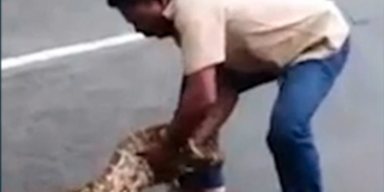 Ο πύθωνας έφτασε σ’εναν αυτοκινητόδρομο, αφου έφαγε τις κατσίκες στο κοντινό χωριό της Κεράλα στην Ινδία.