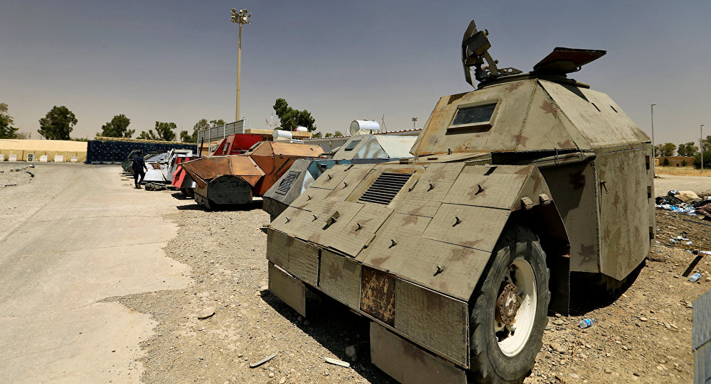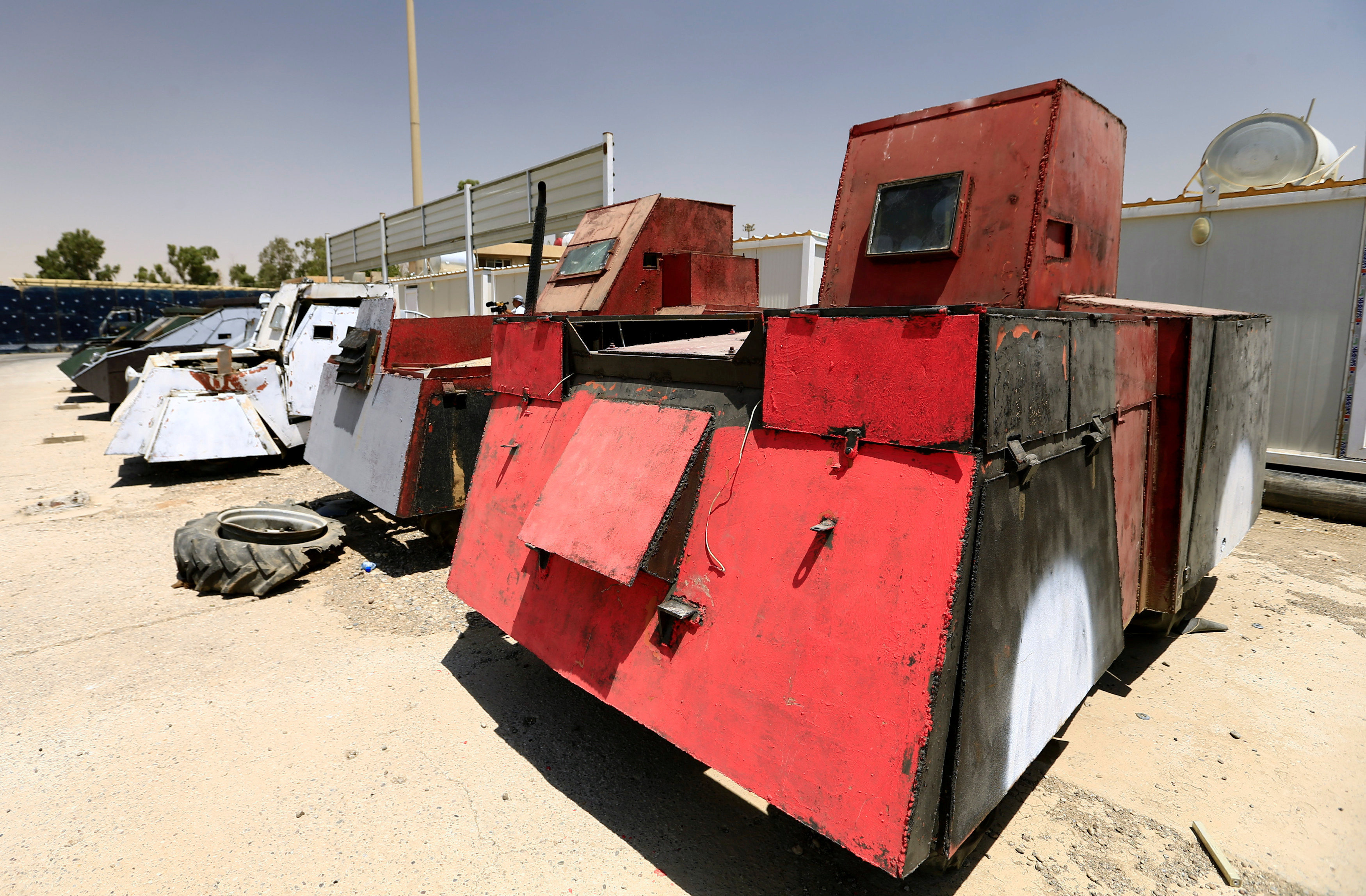 Τα είκοσι τρία «οχήματα μάχης» του ISIS που κατέσχεσαν οι άνδρες της Δύναμης Ταχείας Αντίδρασης της ιρακινής Ομοσπονδιακής Αστυνομίας κατά την διάρκεια νυχτερινών επιδρομών, επεδείχθησαν σε μια έκθεση που δείχνει πόσο επινοητικοί –για την καταστροφή– ήταν οι τζιχαντιστές. Μερικά οξυγονοκολλημένα κομμάτια ατσάλινων πλακών, θωρακισμένα κρύσταλλα από κατεστραμμένα οχήματα του ιρακινού Στρατού προσαρμοσμένα στην «θωράκιση» κι ο εποχούμενος Αρμαγεδδών είναι έτοιμος για επιχειρήσεις.