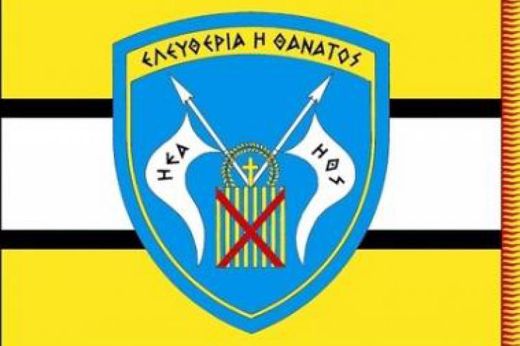 Στο Έμβλημα αναγράφεται το σύνθημα του 1821 «ΕΛΕΥΘΕΡΙΑ Ή ΘΑΝΑΤΟΣ», το οποίο διαδόθηκε κατά τη διάρκεια της Ελληνικής Επανάστασης, ως πολεμική ιαχή αλλά και ως επίγραμμα σε διάφορες σημαίες και λάβαρα των επαναστατικών ομάδων του 1821.