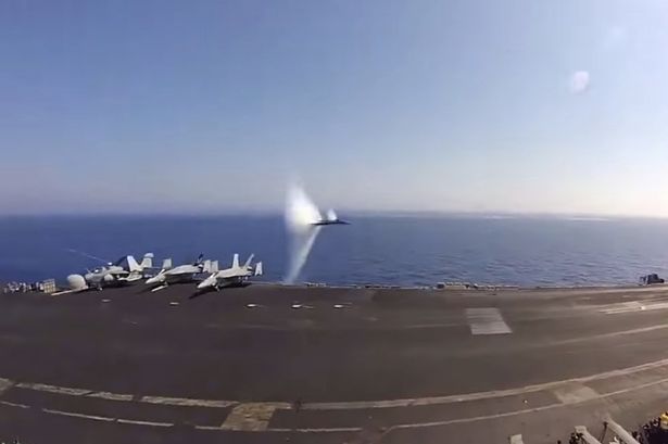 Οι ναύτες στο αμερικανικό αεροπλανοφόρο ειχανε πρώτη θέση στην απίθανη επίδειξη του μαχητικού F/A-18E / F. Το μαχητικό, ανεπίσημα γνωστό με το όνομα Rhino (ρινόκερος), εμφανίζεται απο το πουθενά λογω της εξωπραγματικής του ταχύτητας.