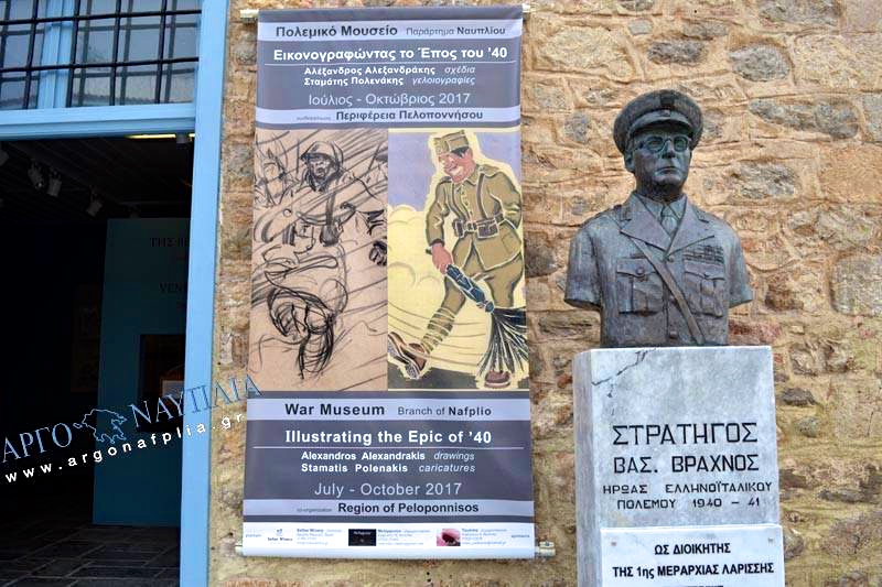 Εγκαίνια Έκθεσης «Εικονογραφώντας το Έπος του ’40» παρουσία τού Υπαρχηγoύ ΓΕΕΘΑ Αντιστρατήγου Κωνσταντίνου Φλώρου, τού Περιφερειάρχου Πελοποννήσου Πέτρου Τατούλη τού Προέδρου & μελών τού ΔΣ του Πολεμικού Μουσείου, τού Διοικητού του ΚΕΜΧ Ναυπλίου Συνταγματάρχου Ευαγγέλου Δημητρέλη, τών Αντιπεριφερειαρχών Τάσσου Χειβιδοπούλου και Ελένης Παναγιωτοπούλου και τού Δημάρχου Ναυπλιέων Δημητρίου Κωστούρου.