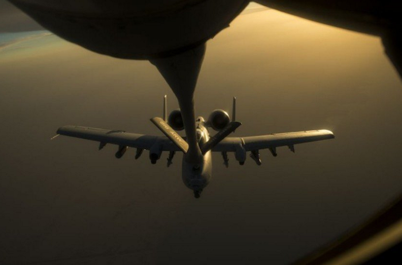 Οι φωτογραφίες τραβήχτηκαν στις 13 Οκτωβρίου, απο ενα KC-135 Stratotanker της 340η Μοιρα (Expeditionary Aerial Refuelling Squadron). Οι πανέμορφες φωτογραφίες δείχνουν δύο A-10 Thunderbolt II (ή «Warthogs») κατα την διάρκεια ανεφοδιασμού τους πάνω από τη νοτιοδυτική Ασία στις 13ης Οκτωβρίου.