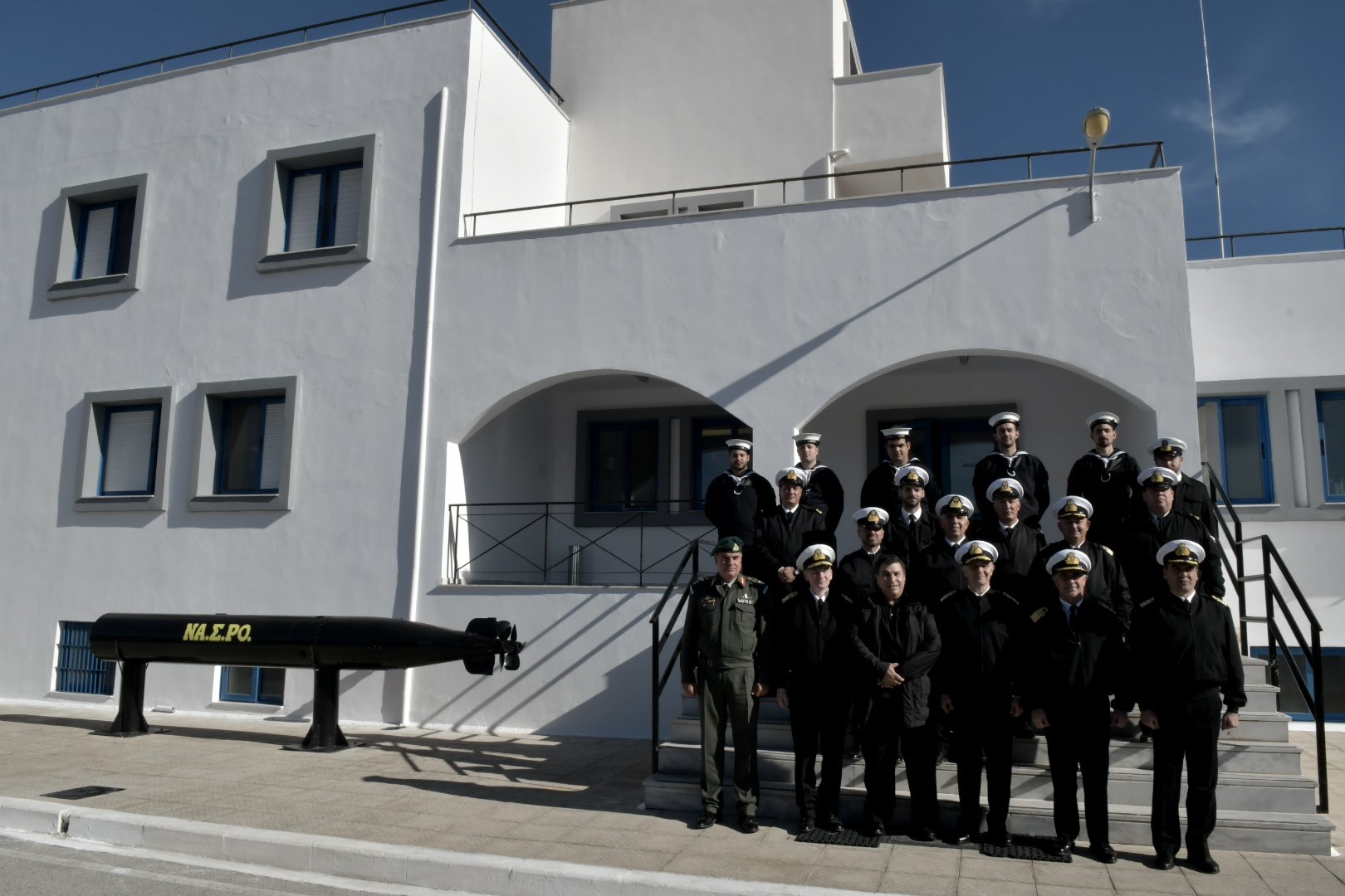 Κατά τη διάρκεια της επίσκεψης ο Αρχηγός ΓΕΝ συνοδευόταν από τον Αρχηγό Στόλου Αντιναύαρχο Κωνσταντίνο Καραγεώργη ΠΝ και τον Διοικητή Σχολής Εθνικής Άμυνας Αντιναύαρχο Νικόλαο Τσούνη ΠΝ.