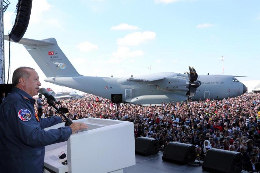 Μιλώντας στην Κωνσταντινούπολη, στο Teknofest, την πρώτη έκθεση αεροδιαστημικής και τεχνολογίας στην Τουρκία, ο Ερντογάν δήλωσε ότι η Τουρκία θα αντιμετώπιζε μεγάλα προβλήματα στις επιχειρήσεις της στα σύνορα και στο εξωτερικό, αν η αμυντική της βιομηχανία δεν είχε φτάσει σε αυτά τα υψηλά επίπεδα, η οποία καλύπτει το 65% των αναγκών της χώρας.