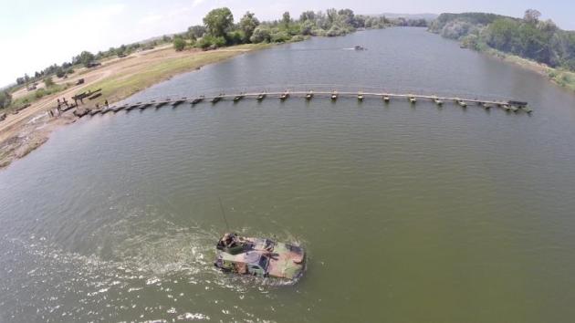 Άρματα, Οχήματα, Πυροβόλα, με αστραπιαίες κινήσεις, πέρασαν από τη μία όχθη του ποταμού στην άλλη, στον ελάχιστο χρόνο, επιτυγχάνοντας τον αντικειμενικό σκοπό της ασκήσεως.