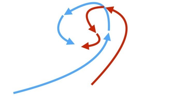 Κλασικός ελιγμός για απόκτηση θέσης ελέγχου με το μπλέ βέλος να απεικονίζει ένα F-16. Το επιτιθέμενο αεροσκάφος κινείται για να μειώσει τη διαφορά γωνίας και να καταλήξει πίσω από τον επιτιθέμενο.