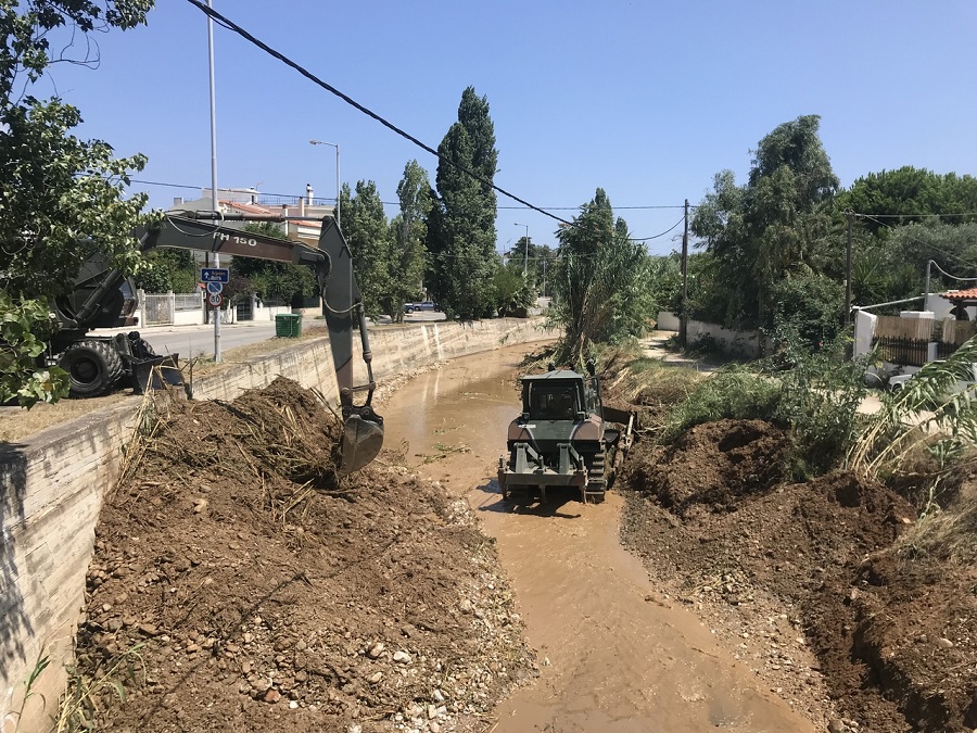- Η Μονάδα Μελετών και Κατασκευών (ΜΟΜΚΑ) ΓΕΕΘΑ προέβη σε εργασίες αντιπλημμυρικής προστασίας σε περιοχές Αν. Αττικής (διευθέτηση οδού πρόσβασης στο ρέμα Πετρέτζα, καθαρισμός ρέματος Ραφήνας, αποκατάσταση οδού 300 μέτρων πλησίον ΚΑΑΥ Αγ. Ανδρέα, αναγνώριση προσβάσεων σε 3 ρέματα στο Ν. Βουτζά).