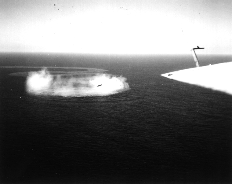 Tο αεροπλάνο συνεχίζει την έρευνα με την βοήθεια ηχοβολιστήρων (sonobuoys), ό,τι πιο σύγχρονο υπήρχε τότε μαζί με το ραντάρ και τις νέες ακουστικές τορπίλλες στον τομέα του ανθυποβρυχιακού πολέμου. Μόλις ο χειριστής ραντάρ Εντ Γουίτλοκ “πιάνει” τον θόρυβο από τις έλικες του I-52, ο πιλότος εξαπολύει μια και μόνο ακουστική τορπίλλη Μk.24 “Fido” –ένα μυστικό όπλο σε πειραματικό ακόμη στάδιο.