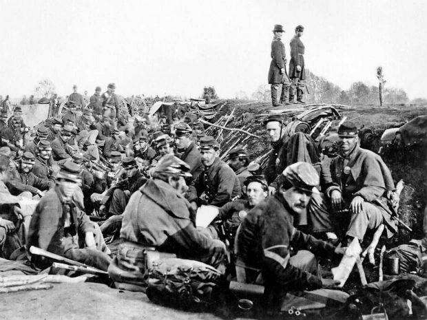 Στρατιωτές κάνουν κάμπινγκ κατά μήκος της δυτικής όχθης του ποταμού Rappahonnock στην πόλη Fredericksburg κατά τη διάρκεια της μάχης του Τσάνσελλορσβιλλ (Chancellorsville). (Πηγή φωτό: upload.wikimedia.org)