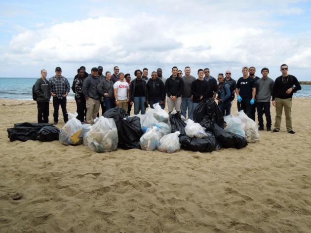 Φωτογραφία: Ο ομάδα του USS George H.W. Bush την ώρα που καθαρίζει την παραλία