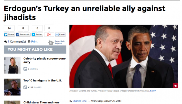 Άρθρο κόλαφος για τον Ερντογάν και την στάση του απέναντι στους τζιχαντιστές. Ούτε λίγο ,ούτε πολύ χαρακτηρίζεται αναξιόπιστος. Το άρθρο της εφημερίδας Washington Times έχει τίτλο : “Η Τουρκία του Ερντογάν ένας αναξιόπιστος σύμμαχος έναντι των τζιχαντιστών” και υπογράφεται από τον Τσάρλ Ορτέλ.