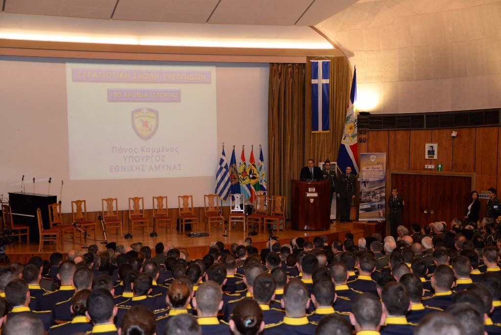«Είναι ιδιαίτερη τιμή, χαρά και ικανοποίηση, η ευκαιρία να βρίσκομαι μαζί με τους σπουδαστές και το προσωπικό της Στρατιωτικής Σχολής Ευελπίδων, μιας Σχολής που προσφέρει ένα ομολογουμένως εθνικό έργο.