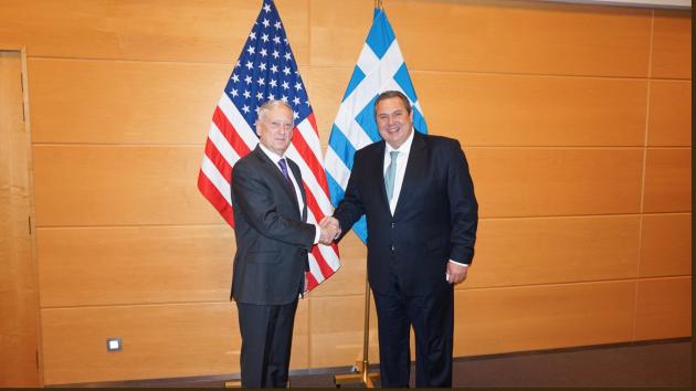 Σήμερα το πρωι ειχα την δυνατότητα να συναντήσω και να συνομιλήσω για αρκετή ώρα με τον υπουργό Άμυνας των ΗΠΑ Στρατηγό Τζειμς Μάτις και τον ΓΓ του ΝΑΤΟ Γενς Στόλτενμπεργκ στους οποίους εξέθεσα την τελευταία προκλητική συμπεριφορά της Τουρκίας στο Αιγαίο και στην περιοχή των Ιμίων των ελληνικών νησιών και εντός των ελληνικών χωρικών υδάτων.