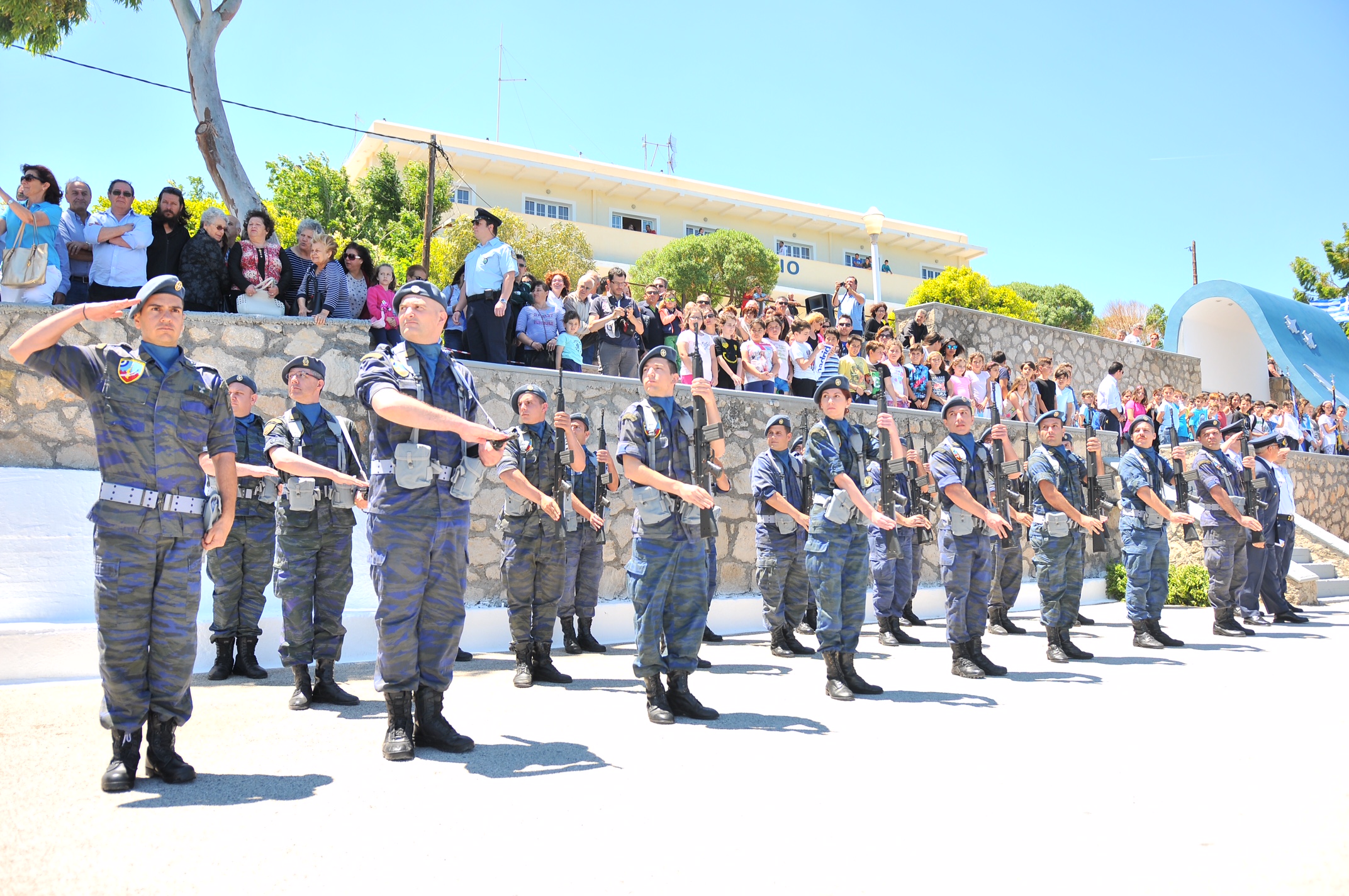Οι Ένοπλες Δυνάμεις μας, είναι αποφασισμένες να μην επιτρέψουν καμιά αμφισβήτηση των κυριαρχικών δικαιωμάτων της χώρας, ιδιαίτερα σήμερα που η προκλητικότητα της Τουρκίας έχει ξεπεράσει κάθε όριο. Οι σημαίες μας δεν πρόκειται να υποσταλούν ποτέ και βεβαίως τις σημαίες μας δεν πρόκειται να επιτρέψουμε ποτέ ξανά να τις πάρει ο αέρας. Τις υπερασπιζόμαστε μέχρι της τελευταίας ρανίδος του αίματος μας. Όλοι μαζί, οι Ελληνίδες και οι Έλληνες. Το οφείλουμε άλλωστε στους ήρωες μας οι οποίοι έδωσαν τη ζωή τους για αυτές, όπως ο Κώστας Ηλιάκης. Τα στελέχη της Πολεμικής Αεροπορίας υπερασπιζόμενα τον εθνικό εναέριο χώρο, τα στελέχη του Πολεμικού Ναυτικού διαφυλάσσοντας τα θαλάσσια σύνορα, ο Στρατός Ξηράς και η Εθνοφυλακή μας σε κάθε μονάδα, φυλάκιο και ακριτική βραχονησίδα υπερασπιζόμενοι κάθε σπιθαμή ελληνικής γης, παραμένουν άγρυπνοι φρουροί για να «φυλάττουν Θερμοπύλες».