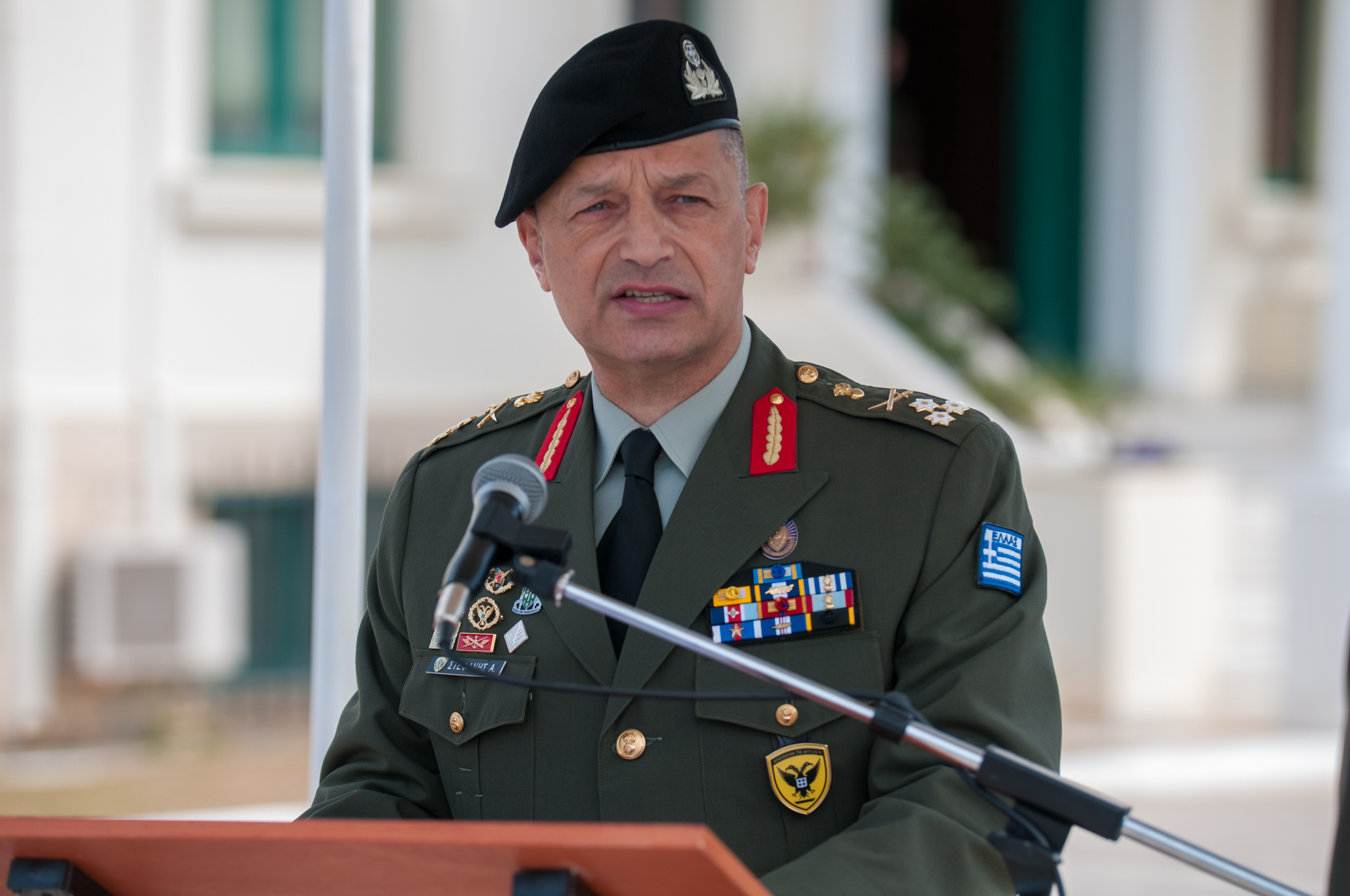 «Με μεγάλη χαρά βρίσκομαι σήμερα μαζί σας στο Στρατόπεδο Ανώτατης Στρατιωτικής Διοίκησης Υποστήριξης Στρατού για να επιδώσω τα ξίφη σε Έλληνες και Ελληνίδες Αξιωματικούς.