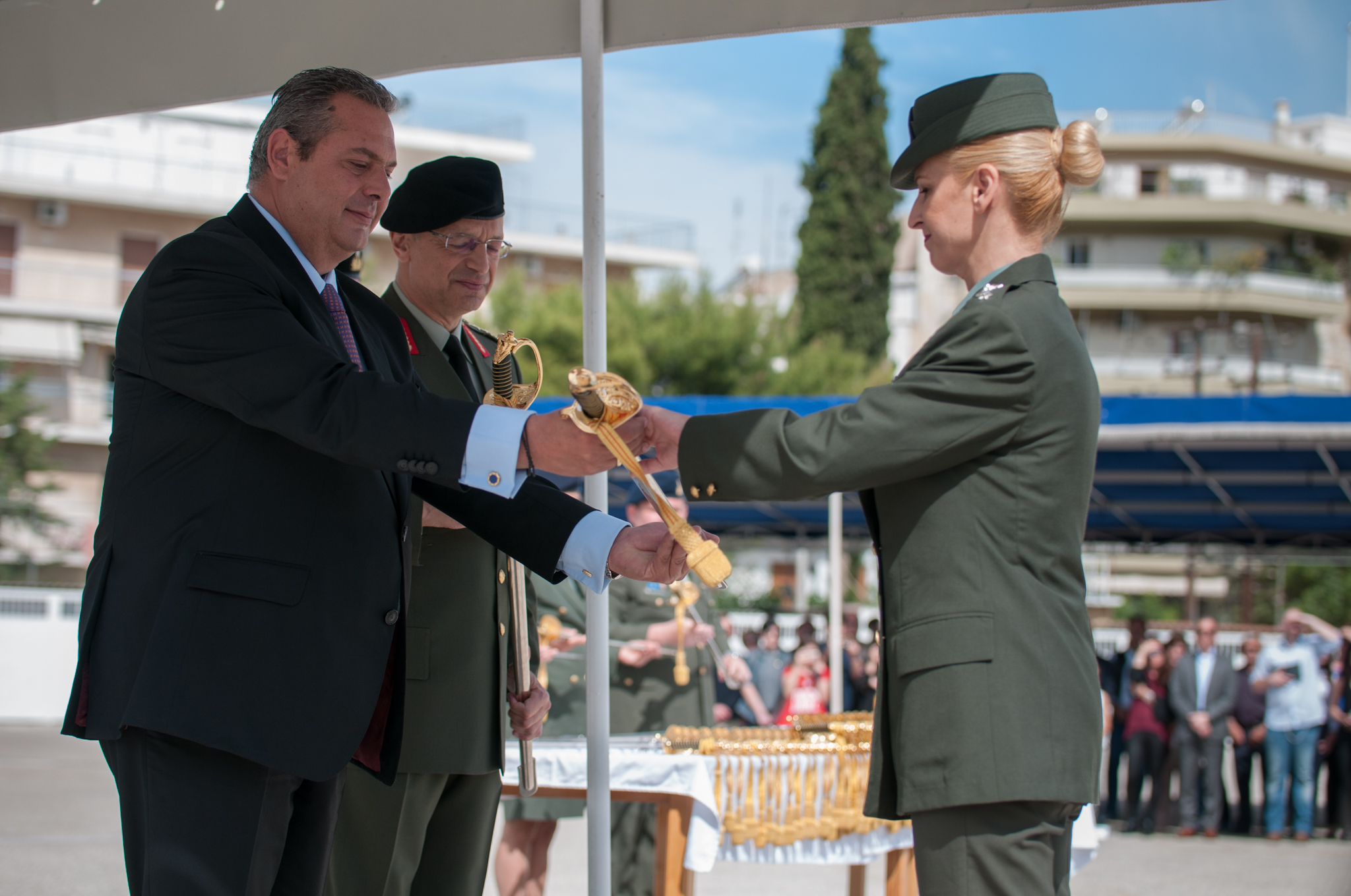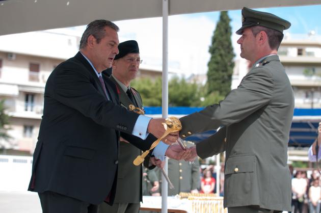 Ο Υπουργός Εθνικής Άμυνας Πάνος Καμμένος, συνοδευόμενος από τον Αρχηγό ΓΕΣ Αντιστράτηγο Αλκιβιάδη Στεφανή, επέδωσε τα ξίφη σε Αξιωματικούς του Στρατού Ξηράς (πλην ΣΣΕ – ΣΣΑΣ). Η τελετή πραγματοποιήθηκε στην έδρα της Ανώτατης Στρατιωτικής Διοίκησης Υποστήριξης Στρατού στην Αθήνα.