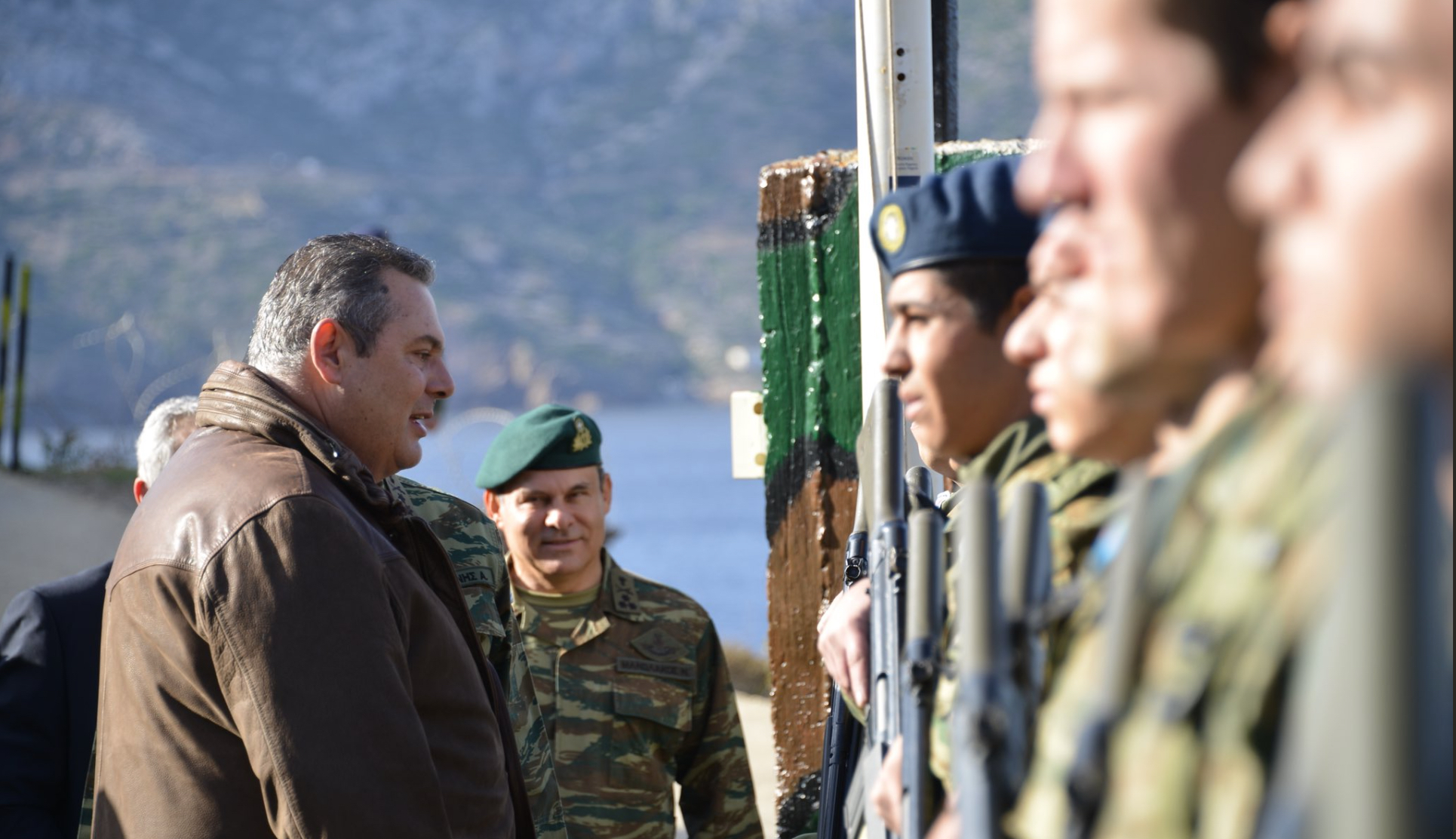 Στα ακριτικά Ψαρά ο Πάνος Καμμένος, με τον αντιστράτηγο Αλκιβιάδη Στεφανή και τον αντιστράτηγο Νικόλαο Μανωλάκο επισκέφθηκε το επιτηρητικό φυλάκιο του νησιού.