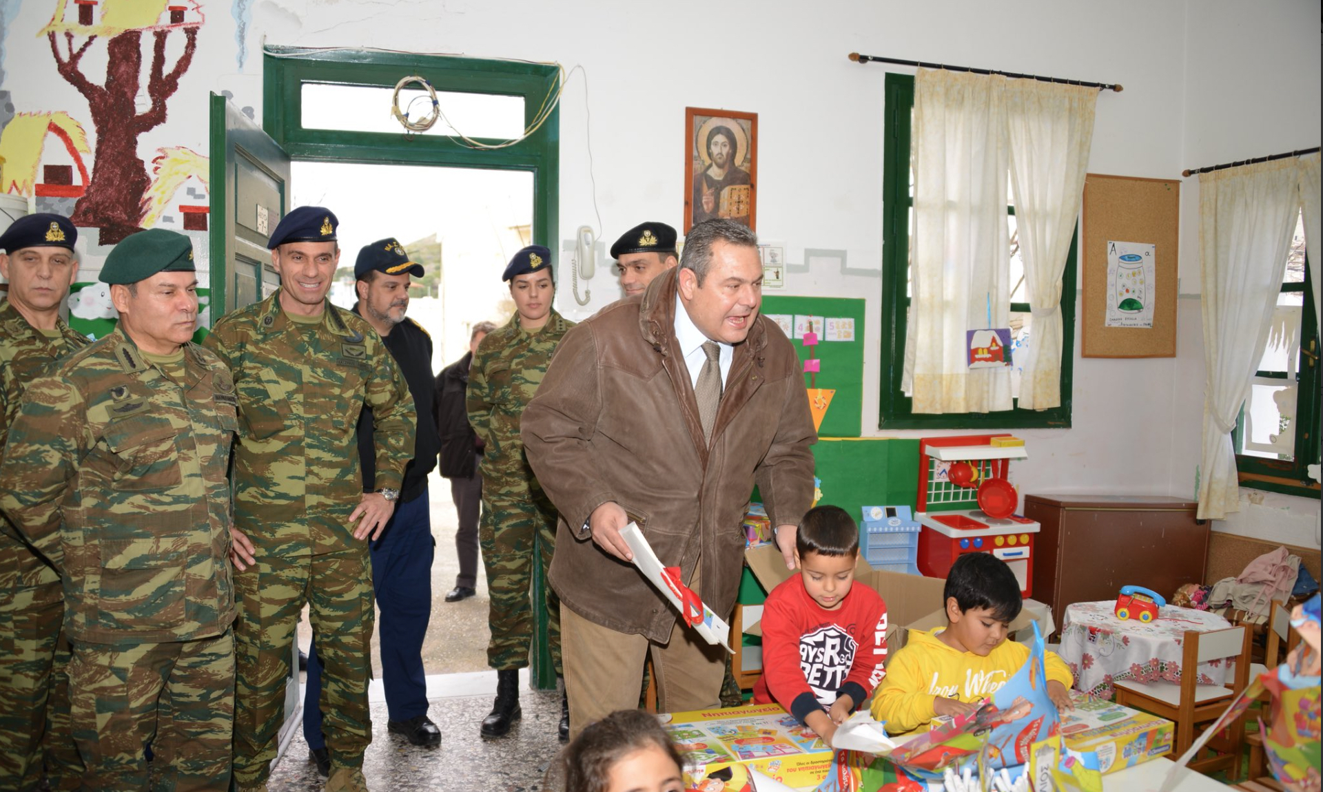 Πρώτος σταθμός του κ. Καμμένου ήταν οι Φούρνοι. Eυχήθηκε ενόψει των εορτών των Χριστουγέννων στα στελέχη,στους στρατεύσιμους και στους εθνοφύλακες στο φυλάκιο Φούρνων.