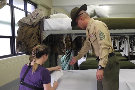 Ο Πεζονάυτης προσπάθησε να της διδάξει πώς να στρώνει ένα κρεβάτι όπως στον στρατό… το μάθημα εξελίχθηκε σε καψόνι τελικά καθώς αποδείχτηκε δύκολο για την δημοσιογράφο….
