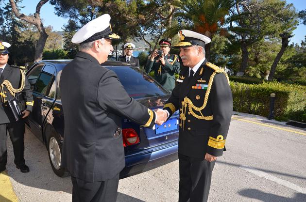 Στο πλαίσιο κατάπλου στο Ναύσταθμο Κρήτης (ΝΚ) των Πολεμικών Πλοίων του Ναυτικού της Ινδίας INS Mumbai, INS Tarkash, INS Trishul και INS Aditya, ο Διοικητής της Μοίρας των Πλοίων, Rear Admiral RB Pandit επισκέφθηκε την Τρίτη 18 Απριλίου 2017 το Διοικητή ΝΚ Αρχιπλοίαρχο Παναγιώτη Χατζάκη ΠΝ, όπου συζήτησαν θέματα κοινού ενδιαφέροντος και ενημερώθηκε για τις δυνατότητες του ΝΚ.