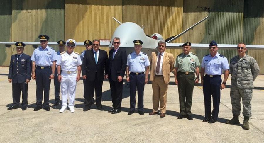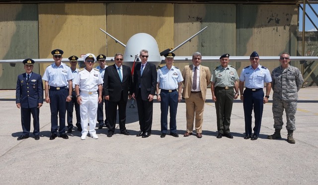 Στο υπόστεγο με τα Ελληνικά Drone Πήγασος 2 στην 110 ΠΜ, συνατήθηκαν ο ΥΕΘΑ Πάνος Καμμένος και ο Αμερικανός πρέσβης στην Αθήνα Τζέφρι Πάϊατ.