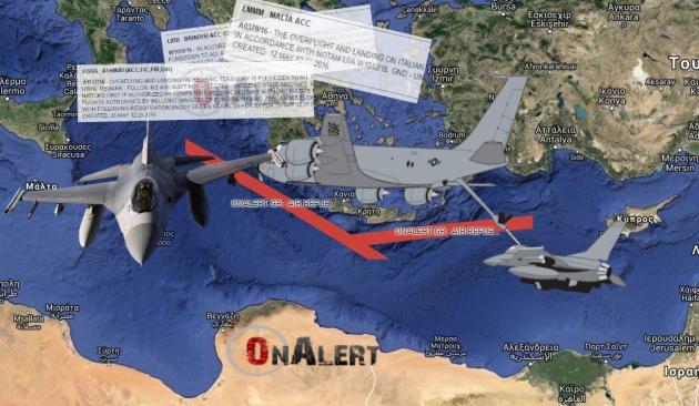 Από τη δέσμευση των περιοχών που έχουν γίνει με ΝΟΤΑΜ, γίνεται αντιληπτό ότι η προετοιμασία αφορά την επικείμενη επέμβαση στη Λιβύη. Ιπτάμενα τάνκερ θα ανεφοδιάσουν αεροσκάφη, τόσο δευτικά της Πελοποννήσου και Κρήτης όσο και νότια. Στην περιοχή που έχει δεσμευτεί νότια της Κρήτης και της Καρπάθου, εκτιμάται ότι τα αεροσκάφη μπορεί και να προέρχονται από την περιοχή της Μέσης Ανατολής. Φαίνετια ότι γίνεται προσομοίωση συνθηκών για αεροπορική υποστήριξη επιχειρήσεων στην Λιβύη.