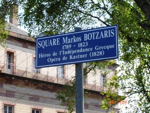Φωτογραφία: Στην πλατεία του Στρασβούργου με το όνομα του Έλληνα οπλαρχηγού, μια ταμπέλα εξηγεί σε όλους τους περαστικούς ποιος ήταν ο Μάρκος Μπότσαρης.