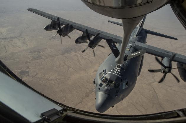 Μια φωτογραφία που δείχνει τον εναέριο ανεφοδιασμό ενός MC-130J Commando II από ένα ιπτάμενο τάνκερ KC-135R επιβεβαιώνει για πρώτη φορά την συμμετοχή των συγκεκριμένων αεροσκαφών Ειδικών Επιχειρήσεων στην μάχη κατά του Iσλαμικού Κράτους σε Συρία και Ιράκ, στο πλαίσιο της Eπιχείρησης Inherent Resolve. Τα MC-130J που αντικατέστησαν τα MC-130N/P Combat Shadow II αποτελούν την σύγχρονη έκδοση του βετεράνου “Ηρακλή” για την ανάληψη/υποστήριξη Ειδικών Επιχειρήσεων, παρέχοντας εναέριο ανεφοδιασμό σε ελικόπτερα Ειδικών Επιχειρήσεων, διείσδυση/απομάκρυνση/ανεφοδιασμό ομάδων Ειδικών Δυνάμεων είτε με ρίψη τους με αλεξίπτωτο ή με προσγείωση του αεροσκάφους σε απομακρυσμένους διαδρόμους υπό “ειδικές τακτικές συνθήκες”.