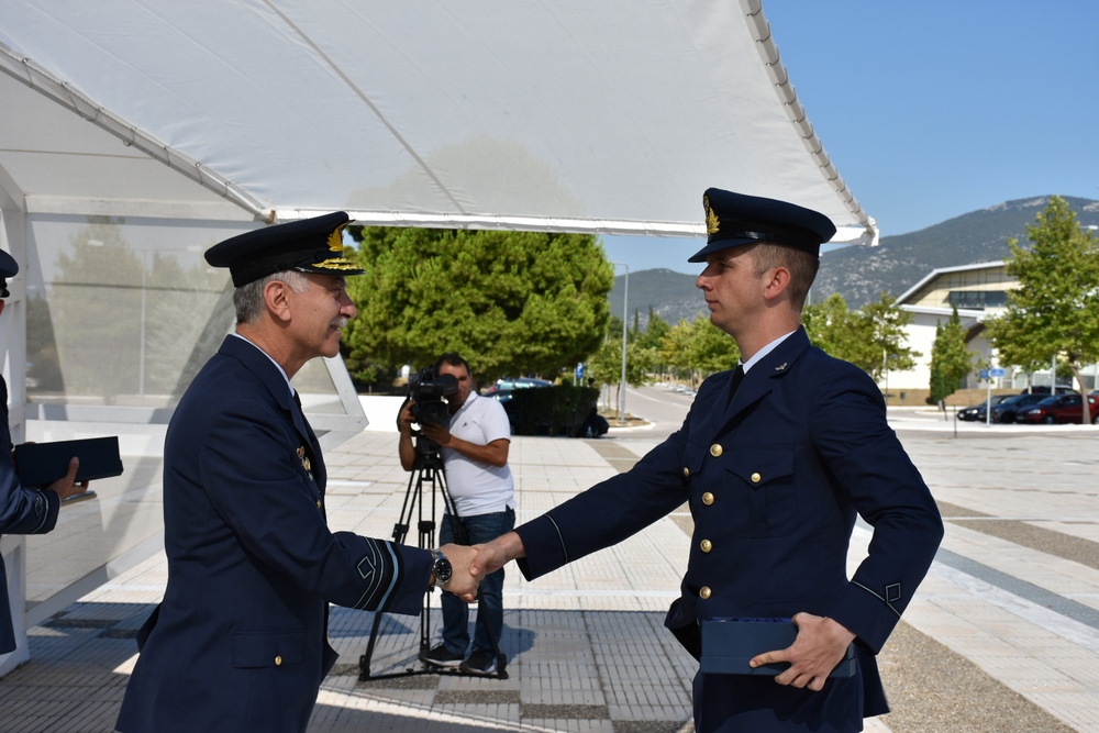 Στη διάρκεια της τελετής βραβεύτηκαν οι πρωτεύσαντες στην Ακαδημαϊκή Εκπαίδευση, Ανθυποσμηναγός (Ι) Γεωργία Καφαντόγια- Κριεμπαρδή, Ανθυποσμηναγός (ΜΑ) Βασίλειος Καμηλάρης και Ανθυποσμηναγός (ΕΑ) Αθανάσιος Καραμήτρος. Στη Στρατιωτική Εκπαίδευση βραβεύτηκε ο Ανθυποσμηναγός (Ι) Γεώργιος Κεραμιδάς ενώ στον πρωτεύσαντα Ανθυποσμηναγό (Ι) Κεραμιδά επιδόθηκε βραβείο από τον Ιταλό Ακόλουθο Άμυνας στην Ελλάδα, Σμήναρχο Enrico Frasson.