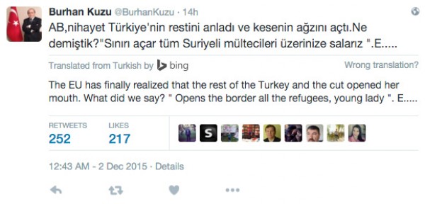Ο σύμβουλος του Ερντογάν Μπουρχάν Κουζού,με μήνυμά του στο twitter αποκαλύπτει όλο το παρασκήνιο για τα όσα έγιναν πίσω από τις κλειστές πόρτες στην Σύνοδος της ΕΕ για το προσφυγικό, όταν οι εταίροι μας τα έδωσαν όλα στην Τουρκία.