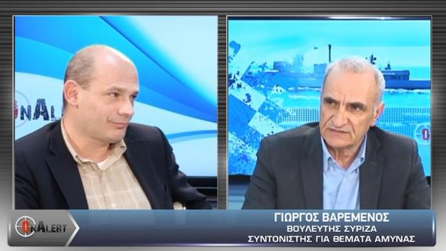 Ο βουλευτής Γιώργος Βαρεμένος, συντονιστής της Επιτροπής Ελέγχου Κοινοβουλευτικού Έργου για θέματα Άμυνας του ΣΥΡΙΖΑ, ήταν ο καλεσμένος της Πέμπτης στο στούντιο του Onalert.gr