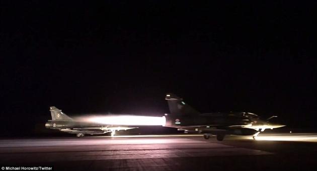 Γαλλικά μαχητικά αεροσκάφη έχουν ξεκινήσει μια σειρά από αεροπορικές επιδρομές κατα του ISIS στη Συρία καθώς η χώρα ξεκίνησε την «ανελέητη» τιμωρία της για τις τρομοκρατικές επιθέσεις στο Παρίσι, γράφει η εφημερίδα Daiy mAIL.