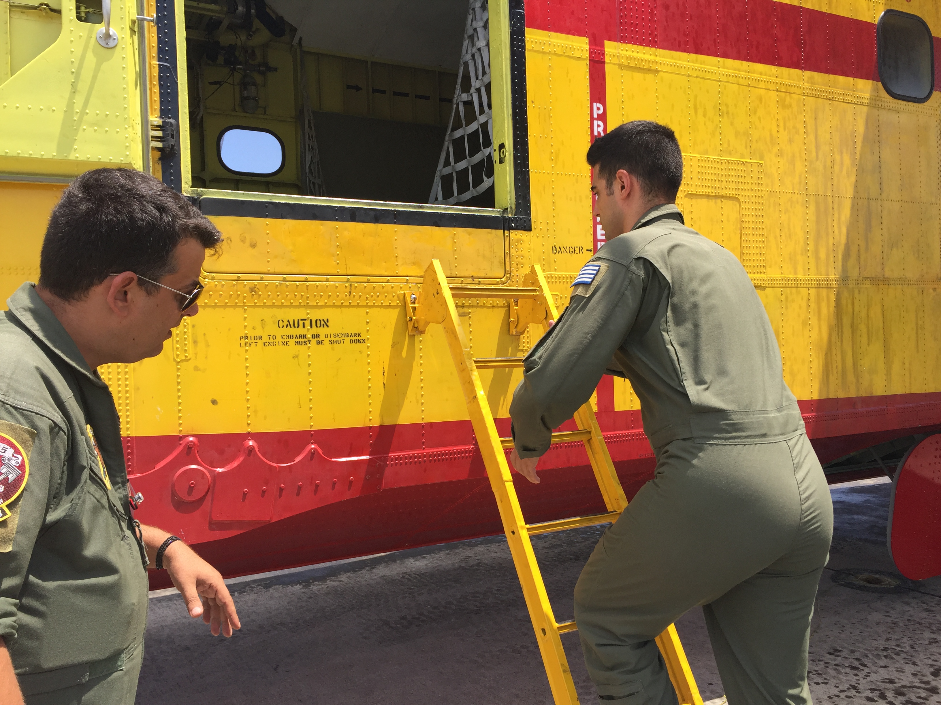 “Η πιο δύσκολη στιγμή που έχω συναντήσει μέχρι στιγμής στην καριέρα μου, ήταν το καλοκαίρι του 2007, λόγω του πλήθους των πυρκαγιών. Απογειωνόμασταν από τη βάση με σκοπό να φτάσουμε στο σημείο της πυρκαγιάς και βλέπαμε στη διαδρομή 3 με 4 πυρκαγιές, οι οποίες δεν είχαν ακόμα καταγραφεί”, μας εκμυστηρεύτηκε ο διοικητής της 355 ΜΤΜ, Δημόπουλος Δημήτριος.