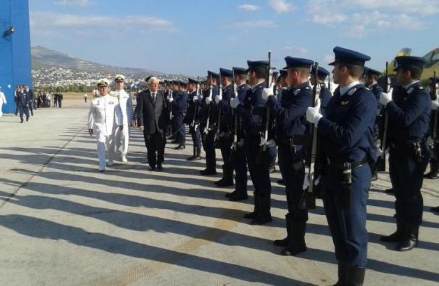 Η μπάντα της Πολεμικής Αεροπορίας έπαιξε τον εθνικό ύμνο. Και τότε τα σημερινά «αετόπουλα» της σχολής Ικάρων και αυριανά γεράκια του Αιγαίου, άρχισαν να τραγουδούν δυνατά τον εθνικό μας ύμνο!