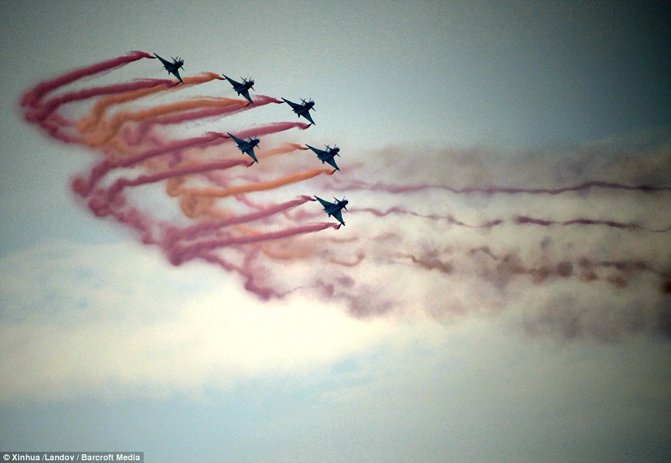 Στην εκδήλωση, η οποία διαρκεί μέχρι την Κυριακή, θα εμφανιστουν επίσης και οι Ρωσοι με την δική τους ακροβατική ομάδα, τους “Ρώσους Ιππότες” καθώς και η ομάδα της Αεροπορίας των Ηνωμένων Αραβικών Εμιράτων.