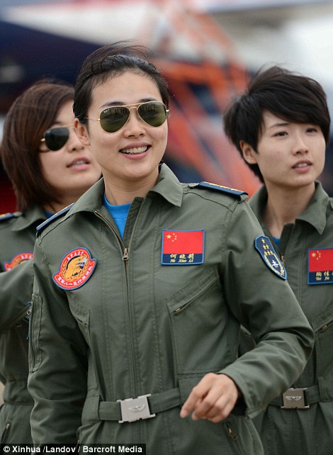 Ως μέρος της παράστασης, δύο από τις γυναίκες βάδισαν προς τα Μαχητικά J-10 σε απόλυτη αρμονία με τους πέντε άνδρες συναδέλφους τους, ντυμένες με τις γνωστές πράσινες φόρμες και τα γυαλιά αεροπορίας που είδαμε όλοι στην ταινία Top Gun, με πρωταγωνιστή τον Τόμ Κρούζ.