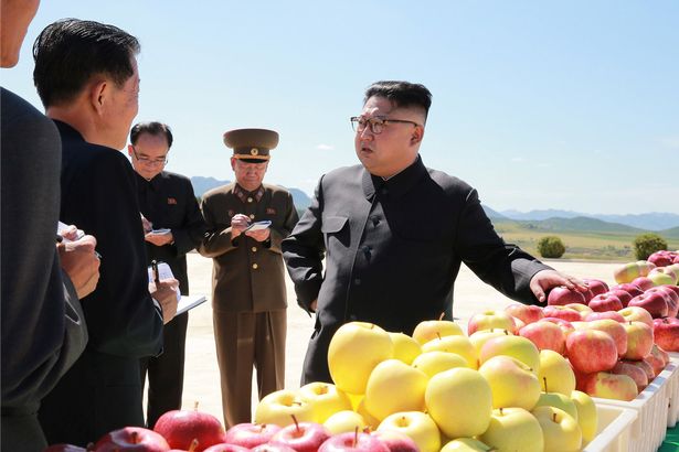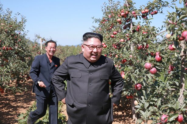 Ξαφνικά, σταμάτησε να παίζει με βαλλιστικούς πυραύλους, πήρε μαζί του τούς αξιωματικούς του και πήγε επίσκεψη… σε έναν οπωρώνα. Θαύμασε τα μήλα, τα λιγουρεύτηκε και φωτογραφήθηκε μαζί τους. Θαυμάστε τις… υπέρτατες εικόνες του «Υπέρτατου Ηγέτη» να παίζει με τα μήλα μες στην καλή χαρά. Ο Γ’ Παγκόσμιος Πόλεμος μπορεί να περιμένει!