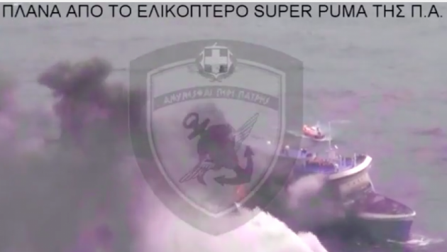 Δείτε το πρώτο βίντεο που αποδέσμευσε η ΠΑ πάνω από το φλεγόμενο πλοίο.