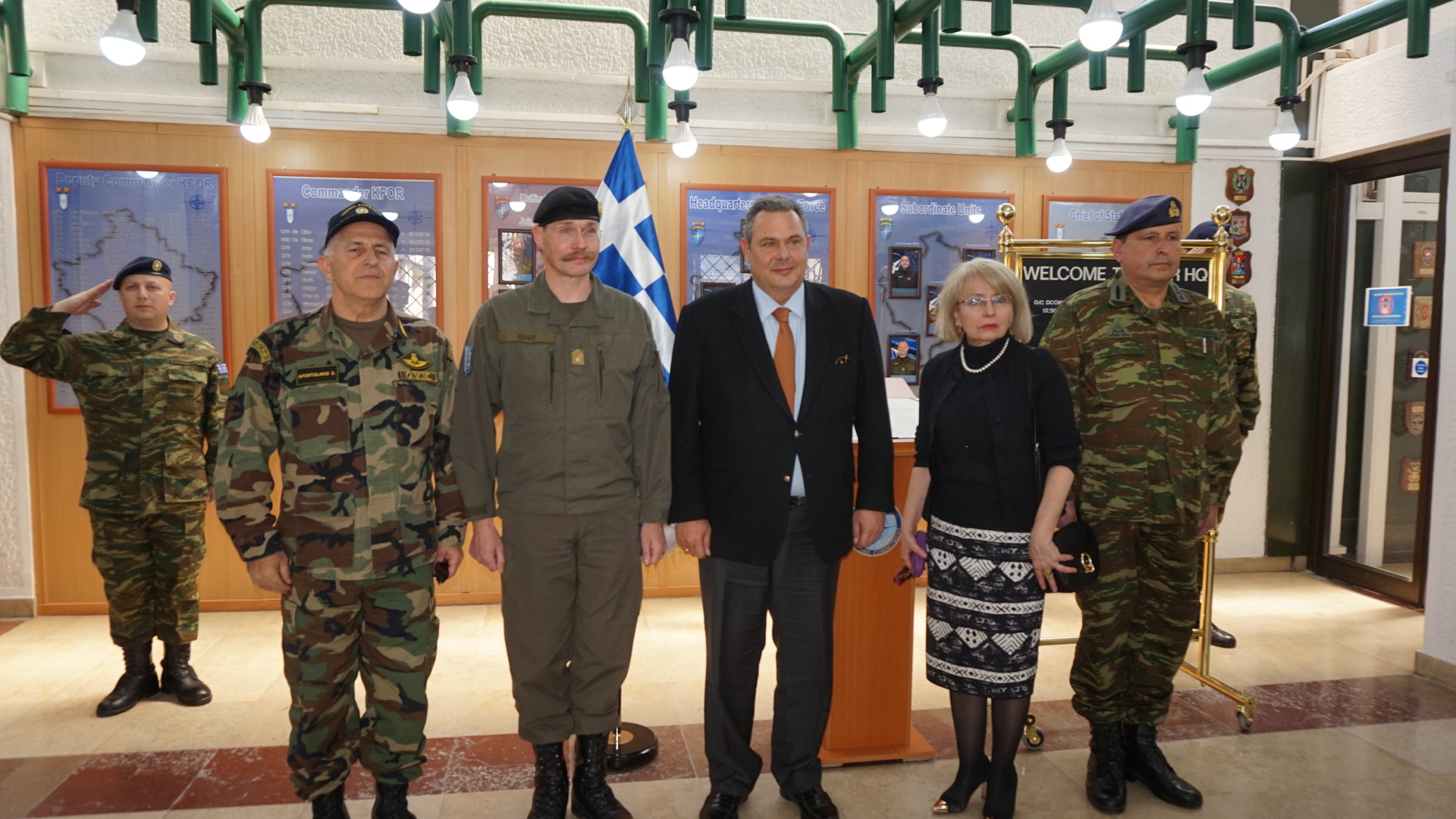 Ο Υπουργός Εθνικής Άμυνας Πάνος Καμμένος, συνοδευμένος από τον Αρχηγό ΓΕΕΘΑ Ναύαρχο Ευάγγελο Αποστολάκη ΠΝ, επισκέφθηκε την έδρα της Ελληνικής Δύναμης Κοσσυφοπεδίου στην περιοχή της Πρίστινα, προκειμένου να ανταλλάξει ευχές με το προσωπικό ενόψει του Πάσχα.