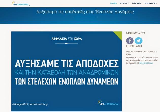 Πολλοί θα πουν ότι επρόκειτο για μια απλή γκάφη ενός κομματικού επιτελείου σε μια προεκλογική εκστρατεία εξπρές. Οι στρατιωτικοί που εντόπισαν στην ιστοσελίδα της ΝΔ το προεκλογικό μήνυμα που έλεγε “αυξήσαμε τους μισθούς των στρατιωτικών” δεν πιστεύουν στην θεωρία της γκάφας. Γιατί το “αυξήσεις στους στρατιωτικούς” έχει ακουστεί πάρα πολλές φορές από κομματικά και κυβερνητικά στελέχη σε πάρα πολλές δημόσιες εμφανίσεις τους.