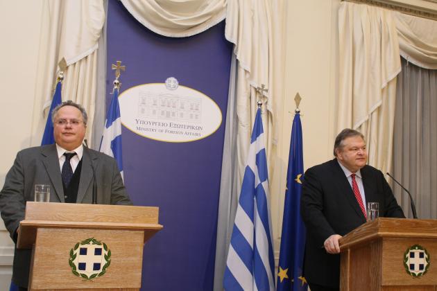 Ο Βενιζέλος απάντησε στον Κοτζιά λέγοντας ότι “ούτε μία φορά, ούτε μία στιγμή η Ελλάδα απεδέχθη πίεση ή προσπάθεια πίεσης στα θέματα εξωτερικής πολιτικής και πολιτικής ασφάλειας και άμυνας με μοχλό την οικονομική κρίση και ιδίως τα ζητήματα δημοσίου χρέους.