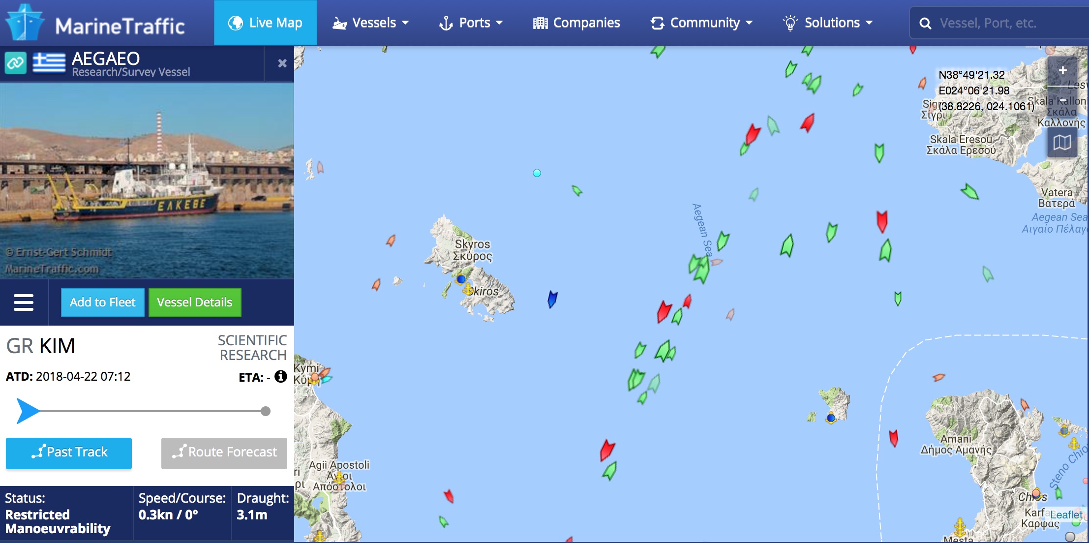 Δείτε τη θέση του Ω/Κ «Αιγαίο» όπως αποτυπώνεται στο MarineTraffic