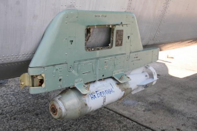 Η γερμανική εφημερίδα Bild έχει σημάνει συναγερμό μετα απο πρόσφατες φωτογραφίες ασκήσεων του Πολεμικού Ναυτικού της Ρωσίας. Ο λόγος γιατι οι βόμβες στα στρατιωτικά μεταφορικά αεροσκάφη Antonov An-26, ειχαν συνθηματα που συνδέονται με το Β’ Παγκόσμιο Πόλεμο όπως «Στο Βερολίνο!» και «Για τον Στάλιν».