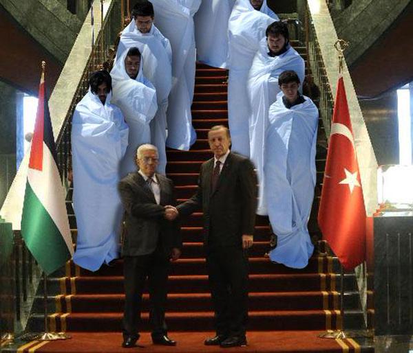 Η εφημερίδα θυμίζει ότι ο Πρόεδρος της Τουρκίας κ. Ρετζέπ Ταγίπ Ερντογάν δεν φείδεται …κόπων όταν πρόκειται να καλωσορίσει ο Παλαιστίνιος ομόλογός του στην Άγκυρα. Την τελευταία φορά τον Ιούλιο του 2014 ο Αμπάς ήταν περιτριγυρισμένος από μια ομάδα δημοφιλών καλλιτεχνών στην Τουρκία, με τους οποίους τον έβαλε ο κ Ερντογαν να φωτογραφηθεί.Για την πρώτη τους συνάντηση στο νέο προεδρικό μέγαρο, το … «KaçAk Σαράι» (»παράνομη παλάτι»), σε σχέση με φερόμενη κατασκευή του χωρίς άδεια – οι Τούρκοι αξιωματούχοι ξεπέρασαν τον εαυτό τους…με τους 16 ντυμένους με πανοπλίες και άλλες φανταχτερές στολές Η εφημερίδα εμφανώς γελοιοποιώντας το θέμα γράφει ότι παραμένει ένα μυστήριο ως προς το γιατί παρέλασαν προς τιμήν του Αμπάς. και ότι παρά την έκπληξη σε εθνικό επίπεδο, ο Παλαιστίνιος ηγέτης πέτυχε να διατηρήσει την ψυχραιμία του σε όλη την επίδειξη καρναβαλιού που έχει σχεδιαστεί ειδικά για αυτόν.